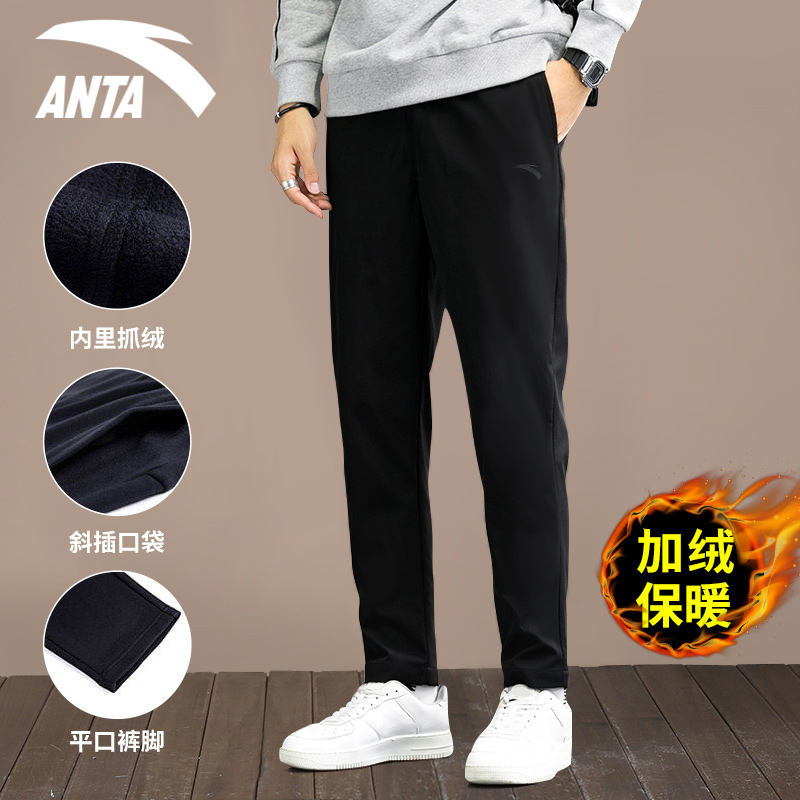 安踏加绒运动裤男秋冬2025新款直筒宽松休闲裤子男生冬季保暖卫裤