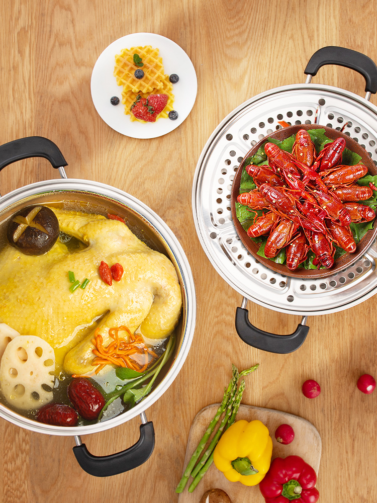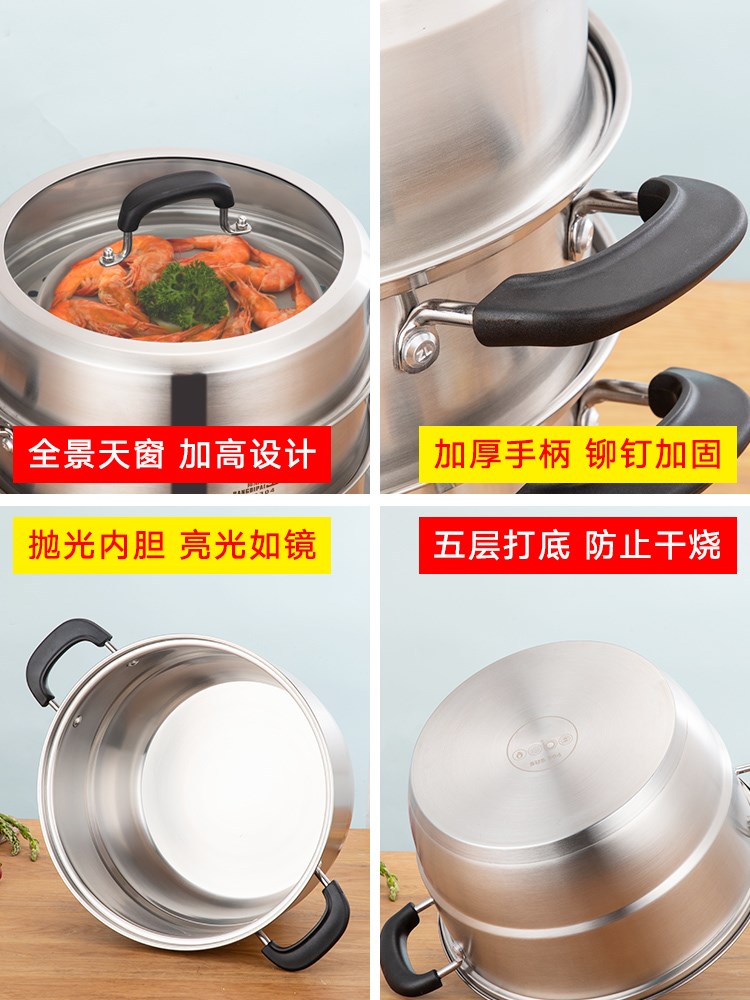 德式巨厚五层复底高档304不锈钢特大蒸锅三层二层汤锅加厚24-38cm