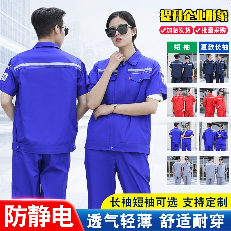 防静电工作服套装男夏季短袖长袖薄款反光安全车间工厂工装定制