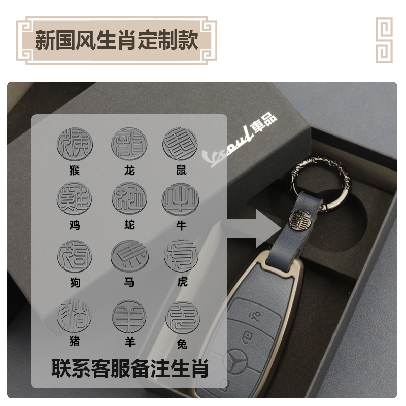 适用奔驰钥匙套E300L车glc300l男c260l包a200l女glb220壳S级gle扣