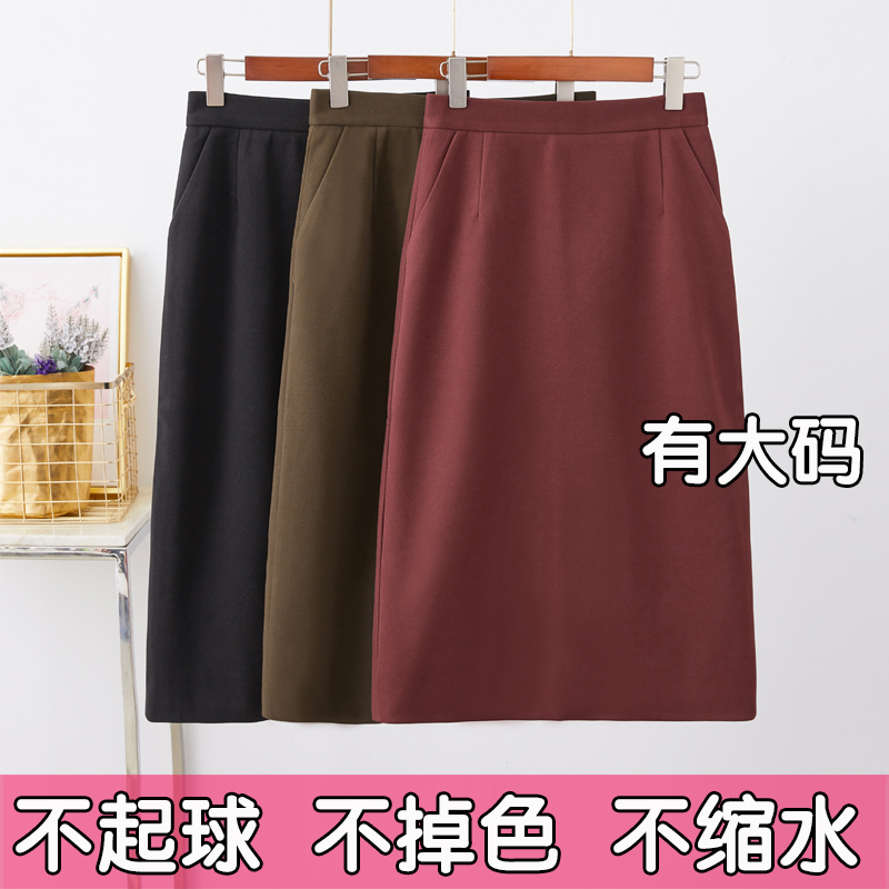 大码毛呢半身裙女高腰复古开叉一步裙包臀裙a字裙长裙子胖mm秋冬
