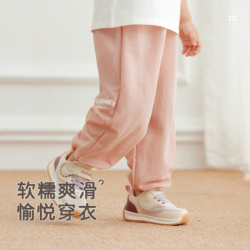 拉比儿童网眼拼接束口长裤薄款25夏季新款男女童休闲裤运动弹弹裤