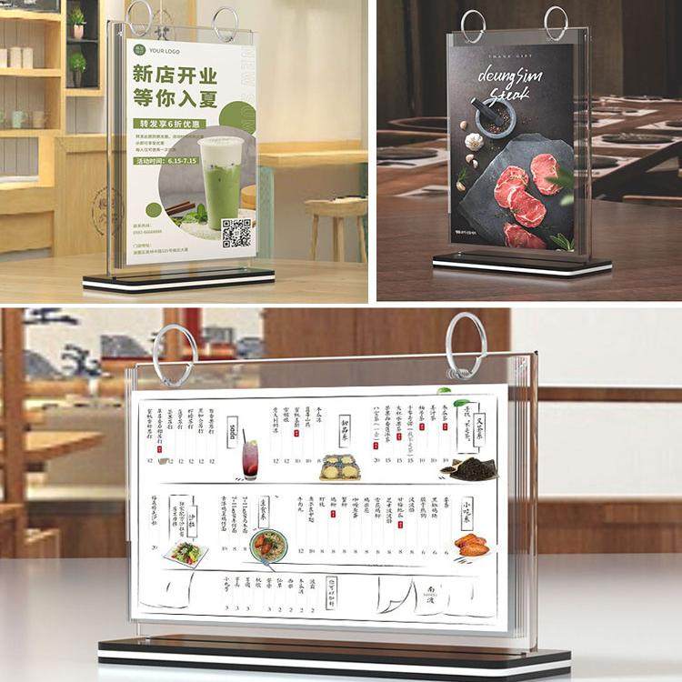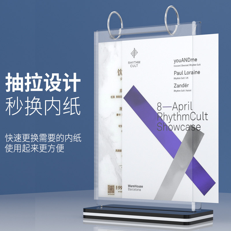 A4翻页台卡亚克力多页台牌餐厅酒水牌多功能展示牌菜单价格牌a5双面活页桌牌台历架A6台签透明展示架定制