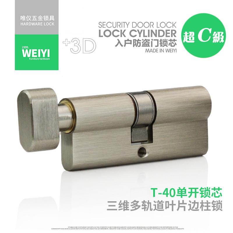 唯儀 超C级单边带扭防盗门锁芯锁具防撬 单开小70 大70锁芯T-40