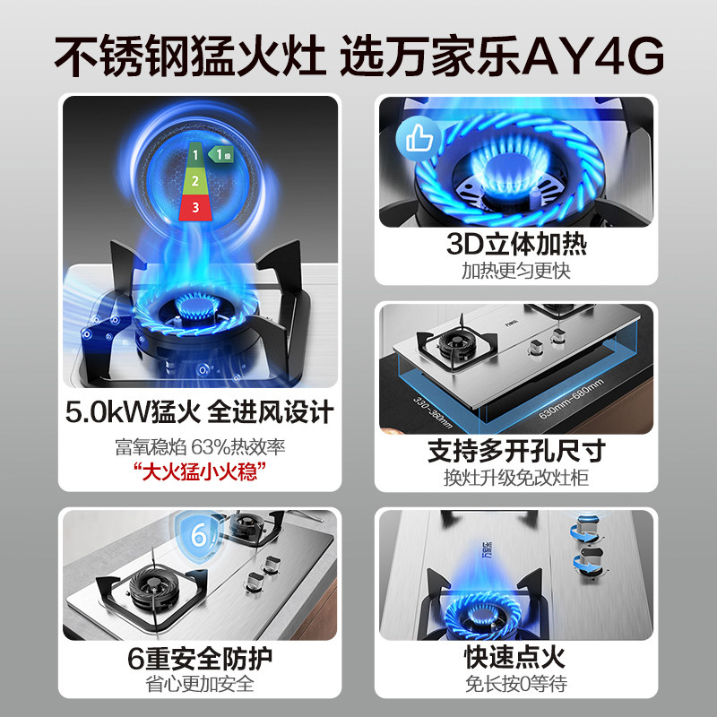 万家乐AY4G/AY5G不锈钢嵌入式燃气灶煤气灶家用厨房天然气液化气