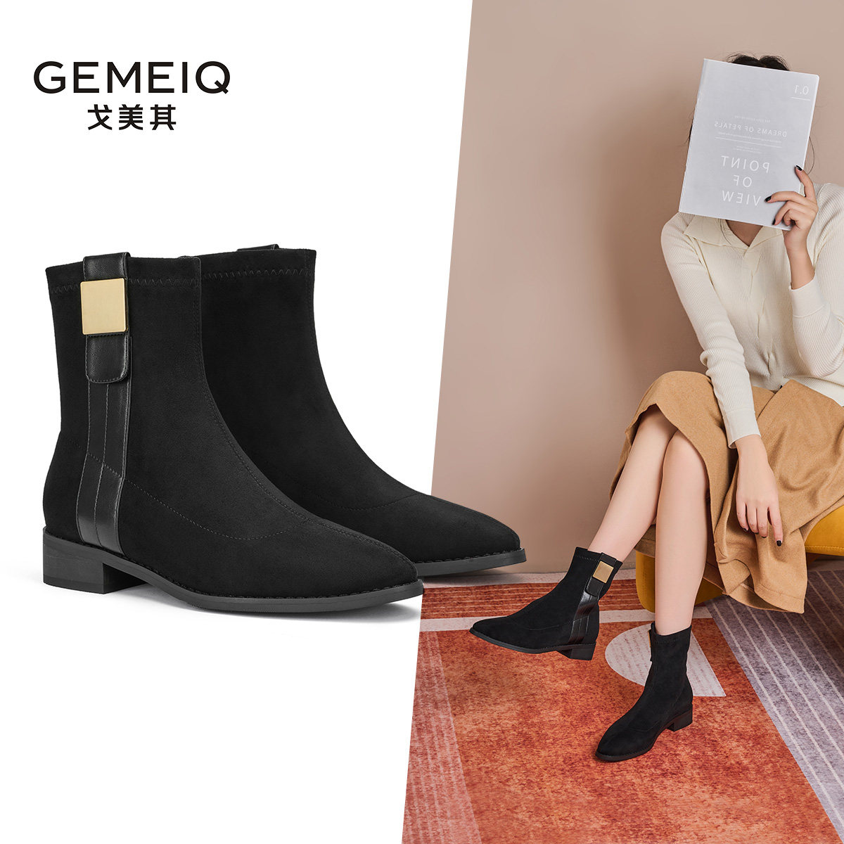 戈美其气质复古百搭绒面马丁靴