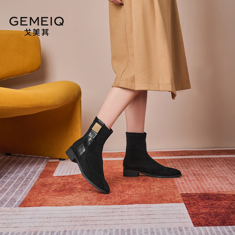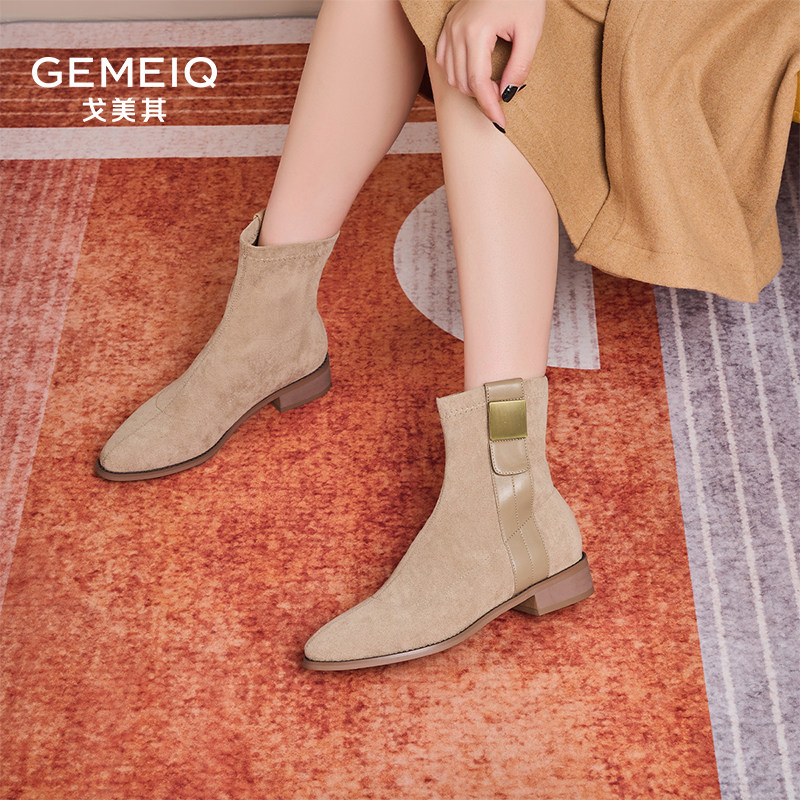 戈美其马丁靴女舒适春季新款气质通勤复古百搭绒面瘦瘦靴弹力短靴