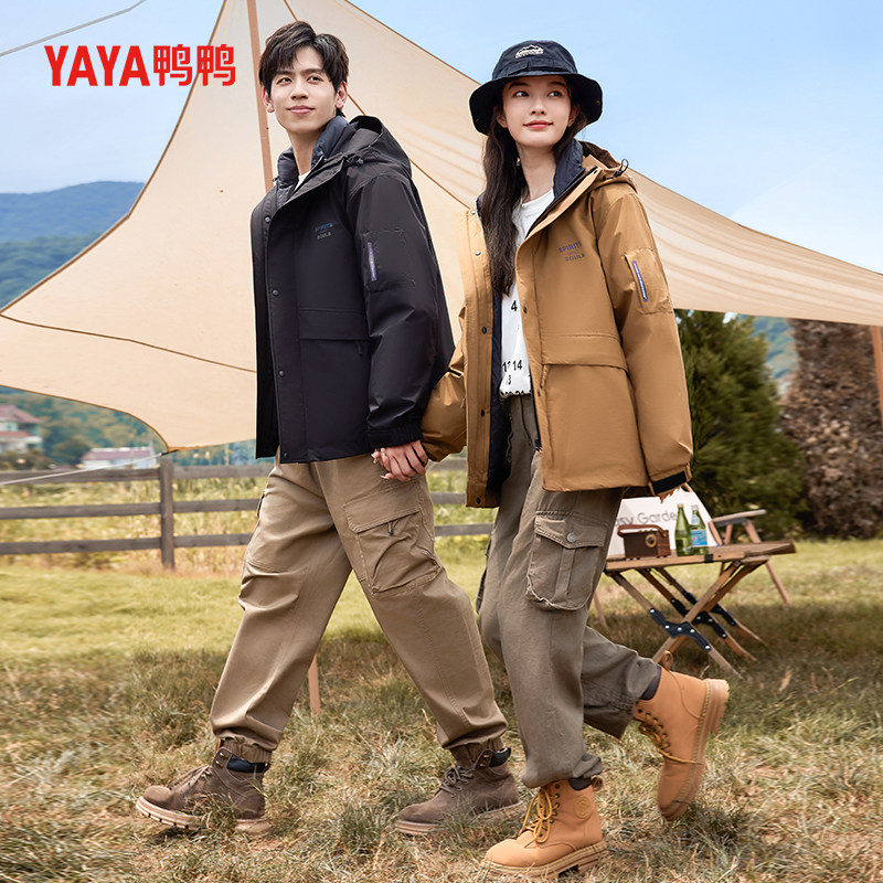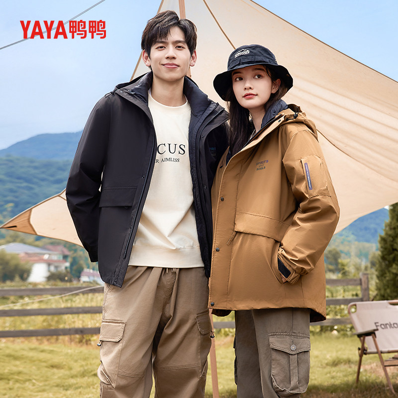 鸭鸭情侣款羽绒服2025秋季羽绒内胆可脱卸一衣三穿90鹅绒外套Y