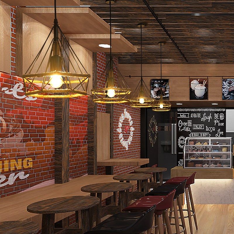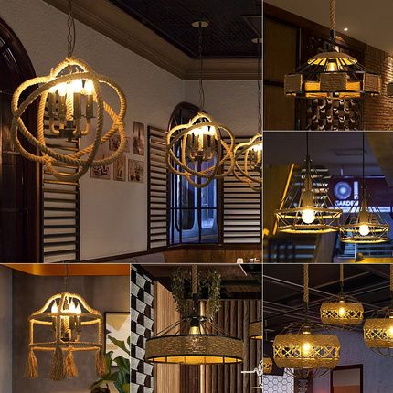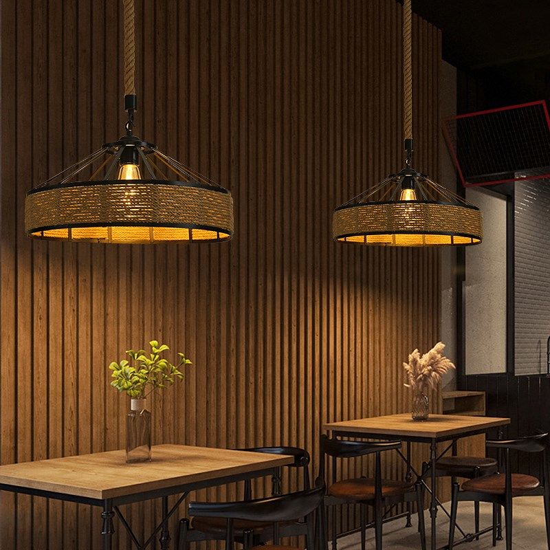 麻绳吊灯工业风美式饭店烧烤店复古餐饮铁艺灯创意装饰网红灯具
