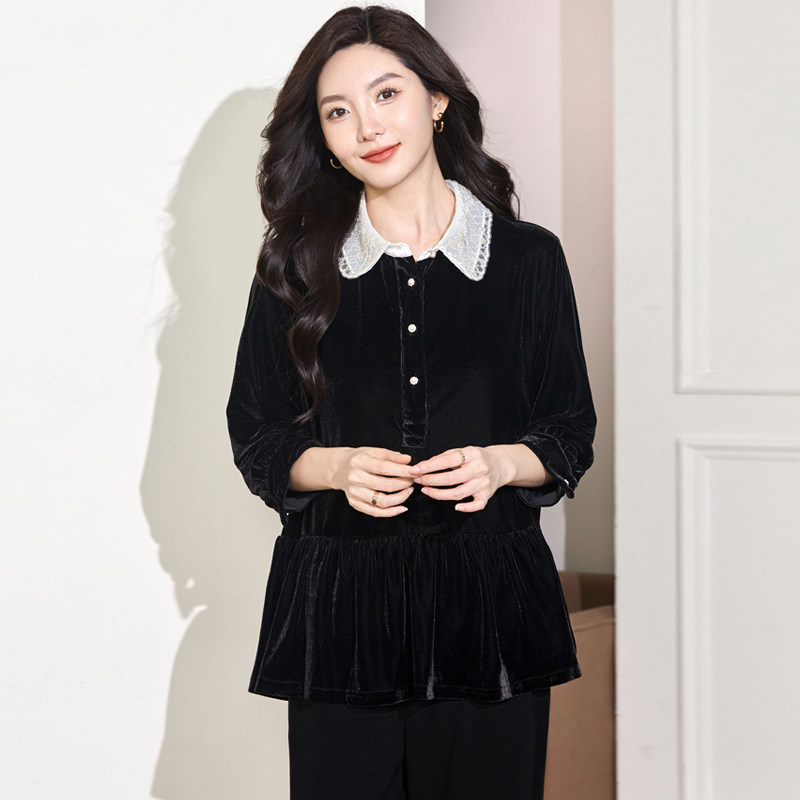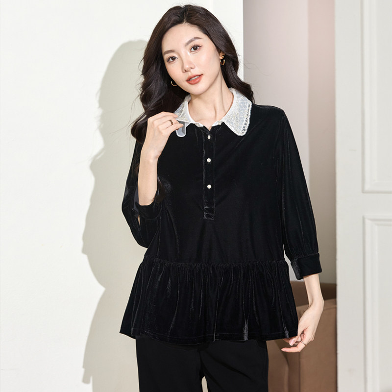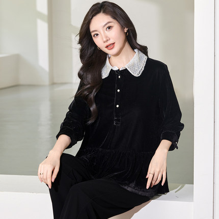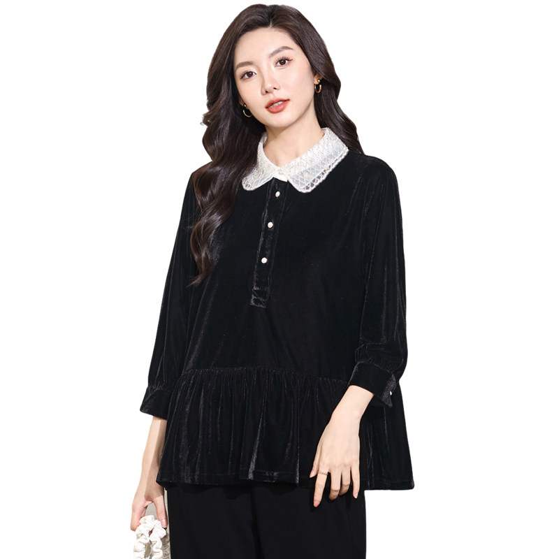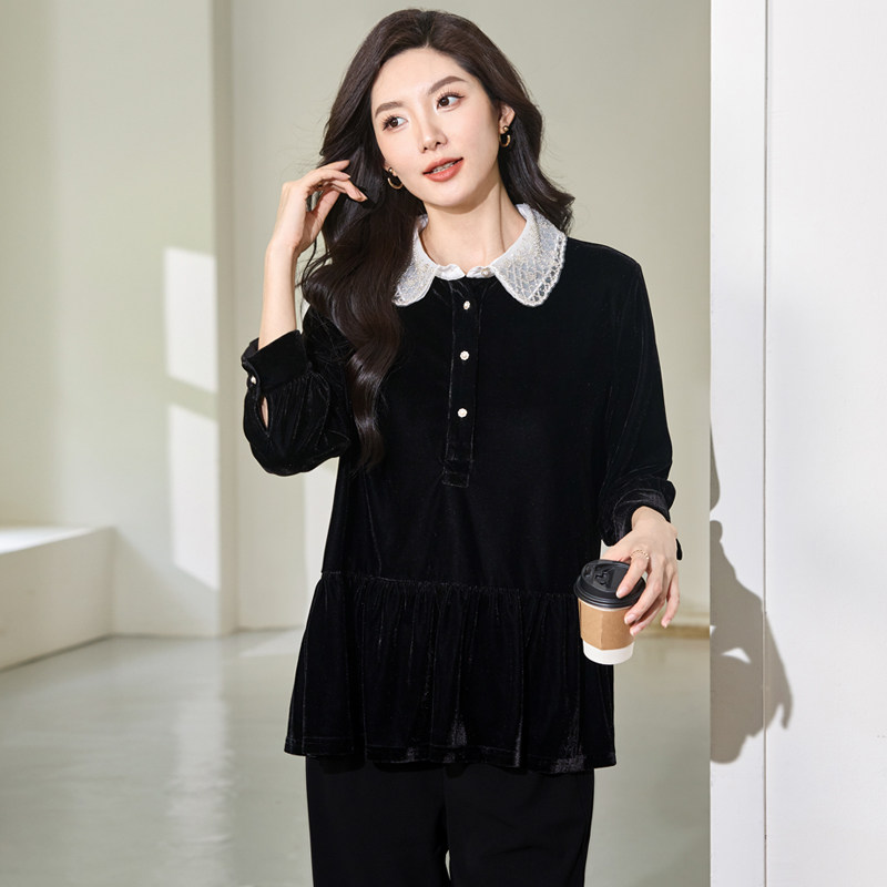 大码女装春装胖妹妹时髦洋气休闲金丝绒上衣胖mm遮肚显瘦长袖T恤