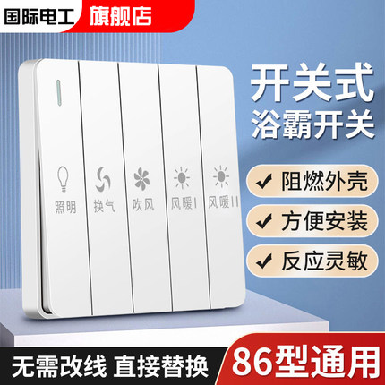 国际电工浴霸开关五合通用