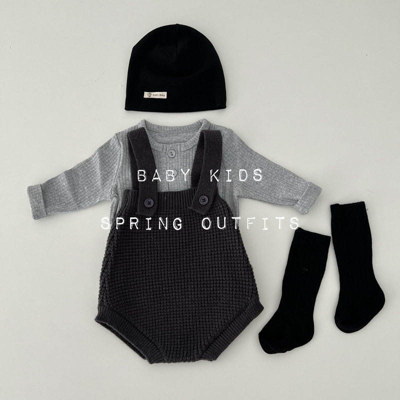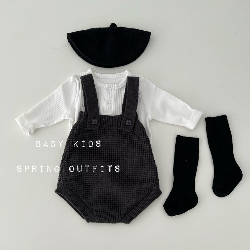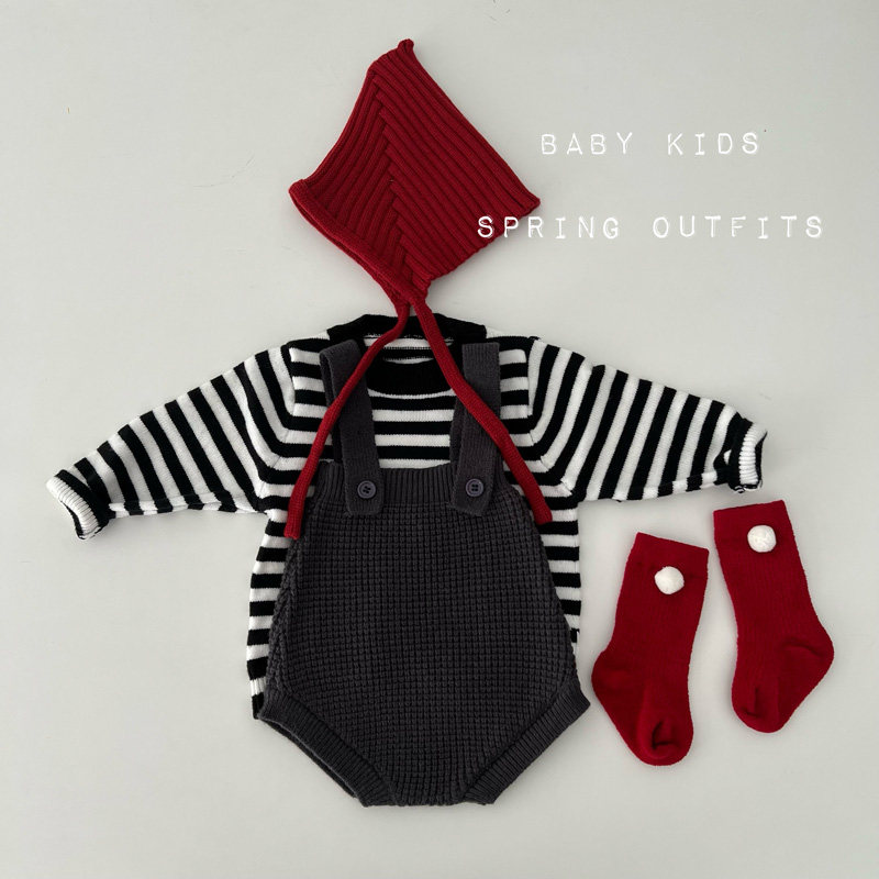 INS春秋男女宝宝条纹针织衫+背带包屁短裤套装婴幼儿外出服两件套