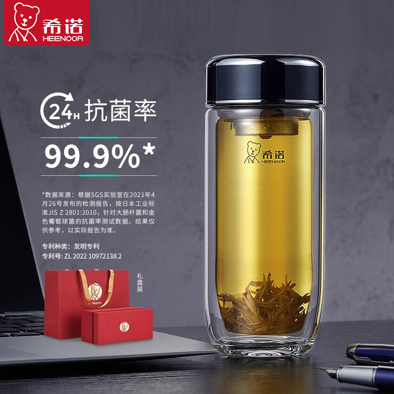 希诺双层抗菌玻璃杯便携泡茶水杯