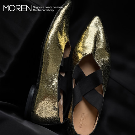 法式尖头爆裂纹手工玛丽珍芭蕾舞鞋绑带平底