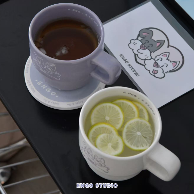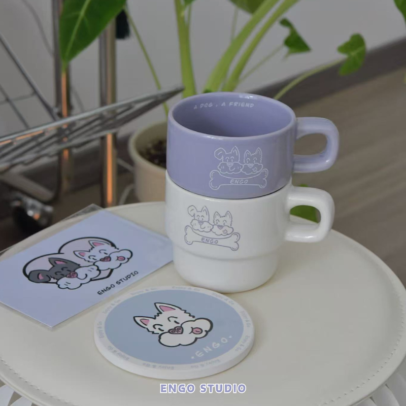ENGO原创设计雪纳瑞周边萌宠陶瓷叠叠杯马克杯家用咖啡杯情侣杯