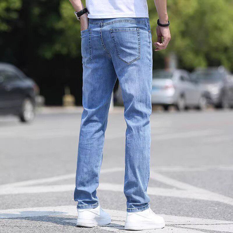 Yishion以纯浅色牛仔裤男士秋冬新款高端耐磨加绒加厚直筒宽松休