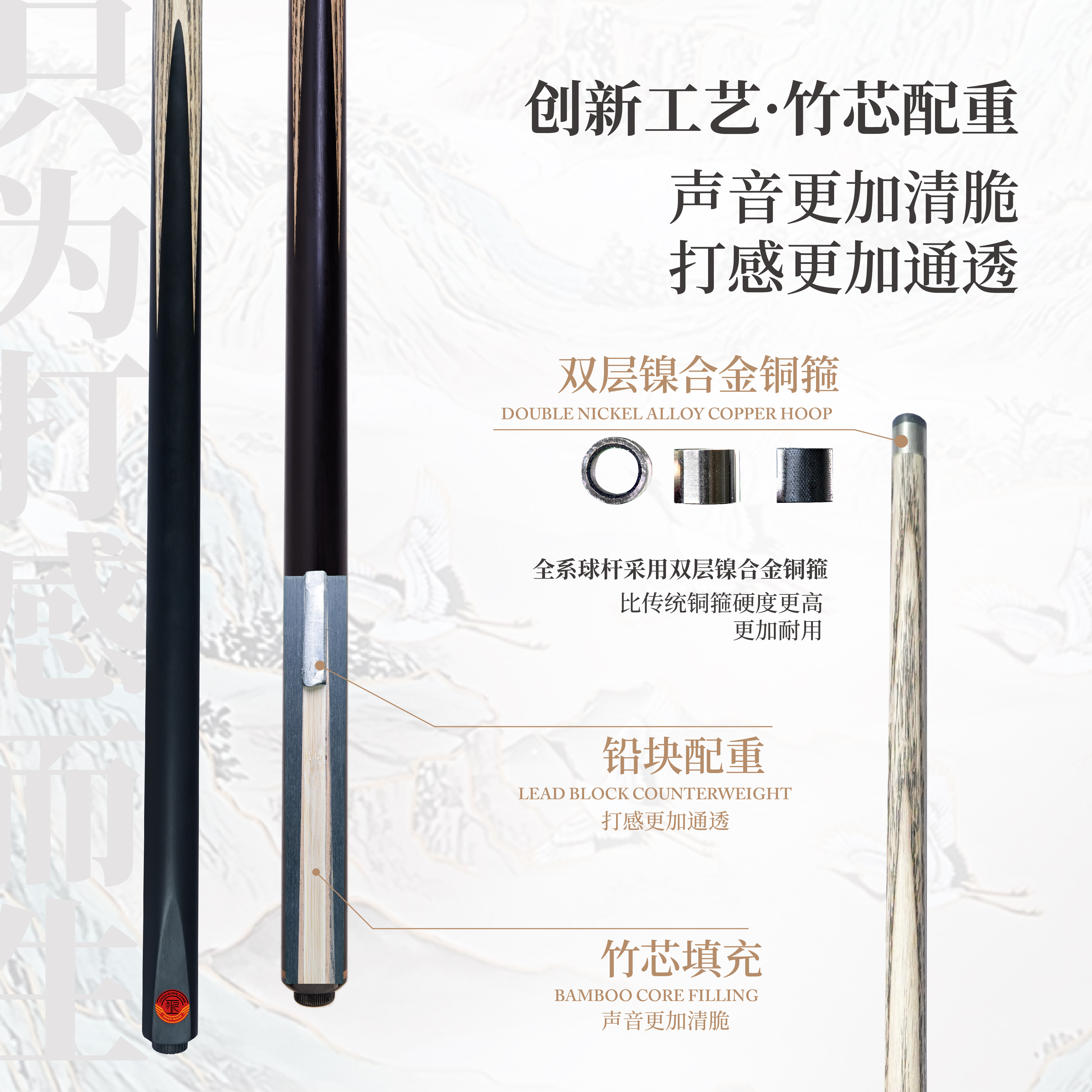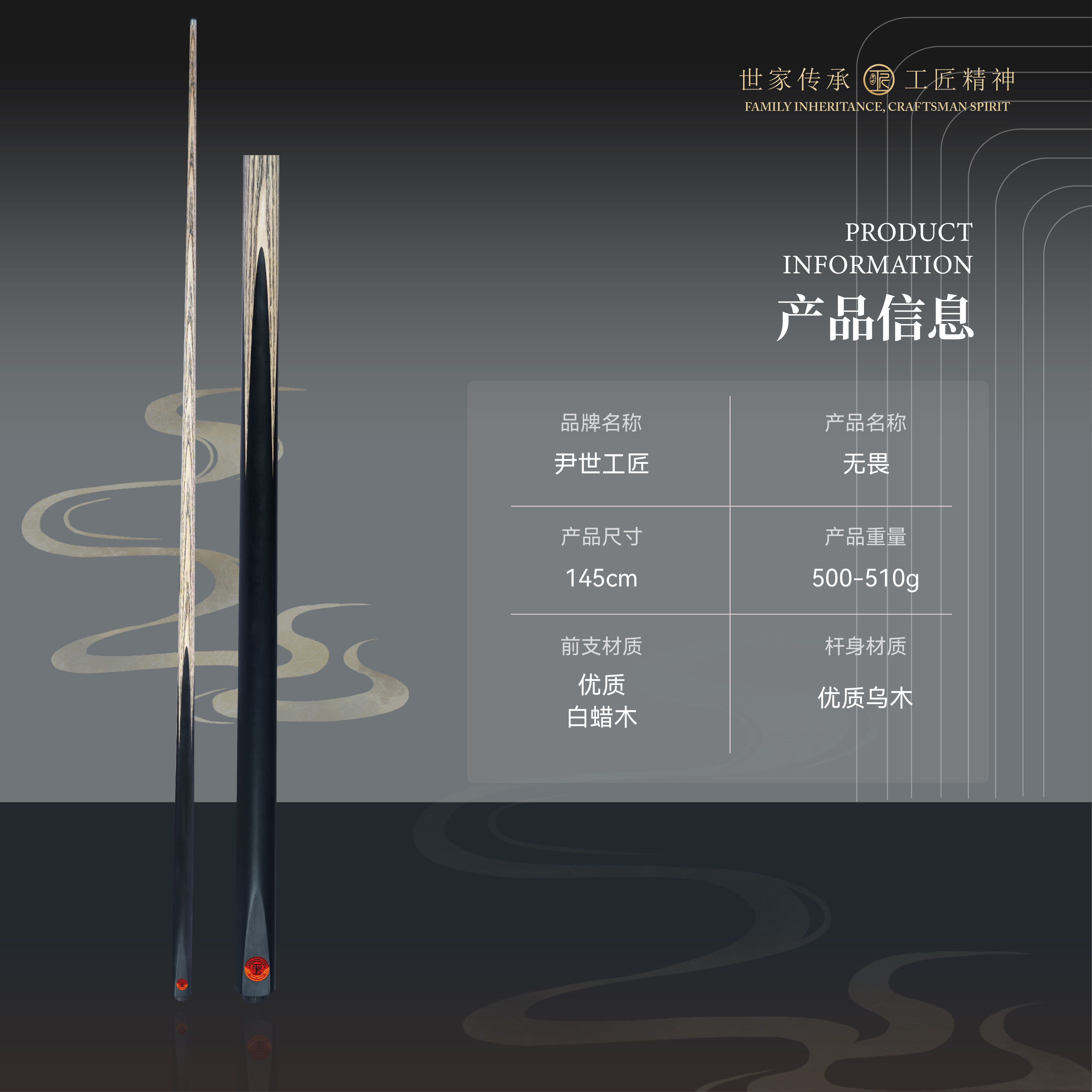 尹世工匠新款无畏台球杆黑通小头杆中式八球九球杆斯诺克桌球杆