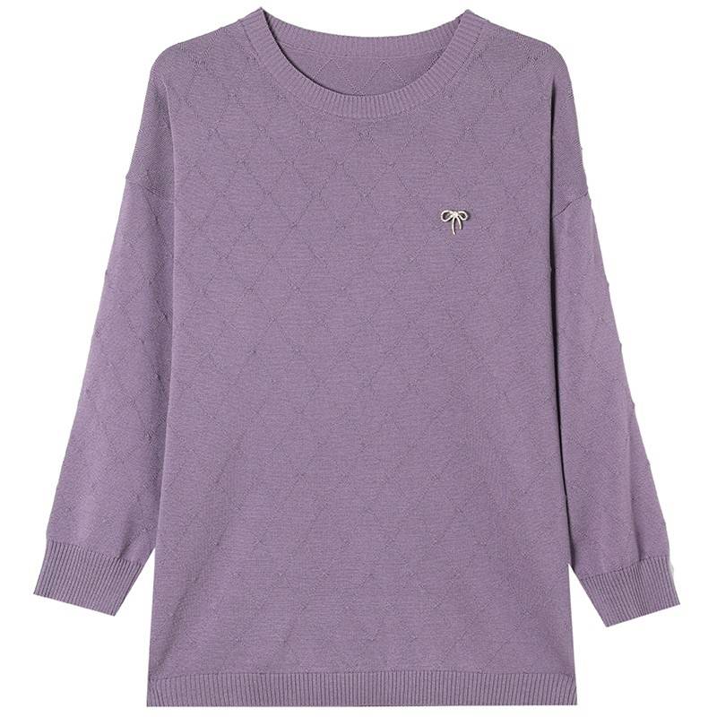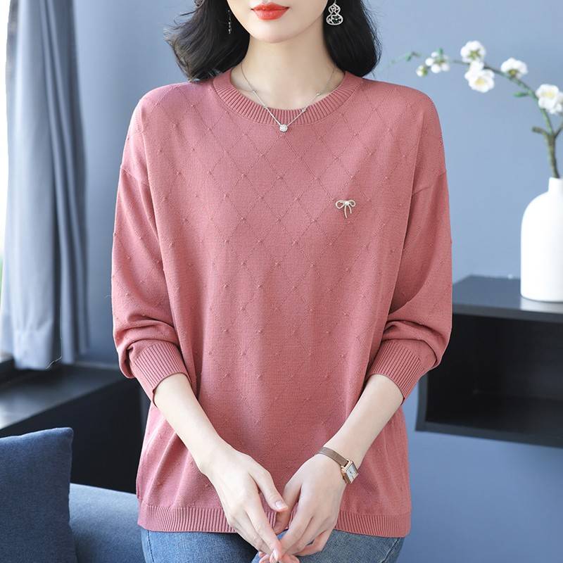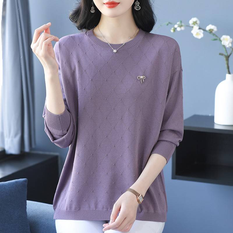 中年妈妈春秋新款冰丝针织T恤衫女宽松加肥大码显瘦遮肚打底上衣