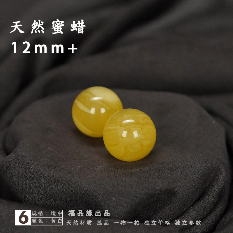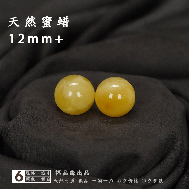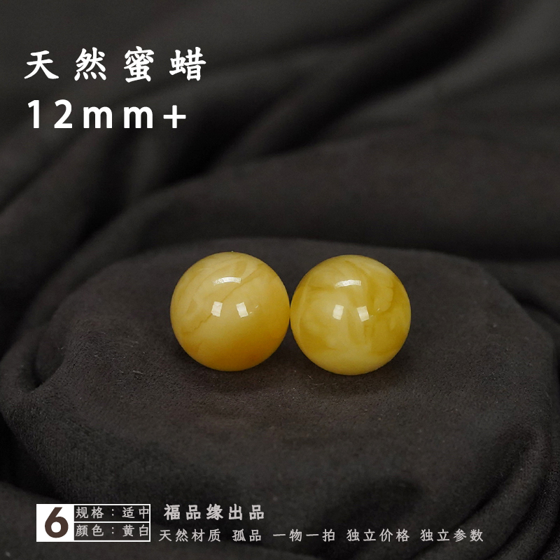 12毫米天然蜜蜡对珠圆珠散珠耳坠裸珠石鸡油黄隔珠腰珠DIY配件真