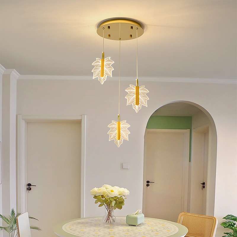楼梯吊灯现代简约别墅售楼部复式楼创意个性艺术枫叶吧台餐厅灯具