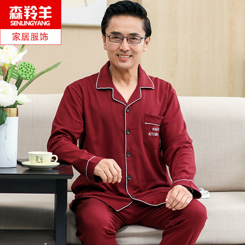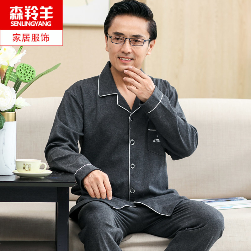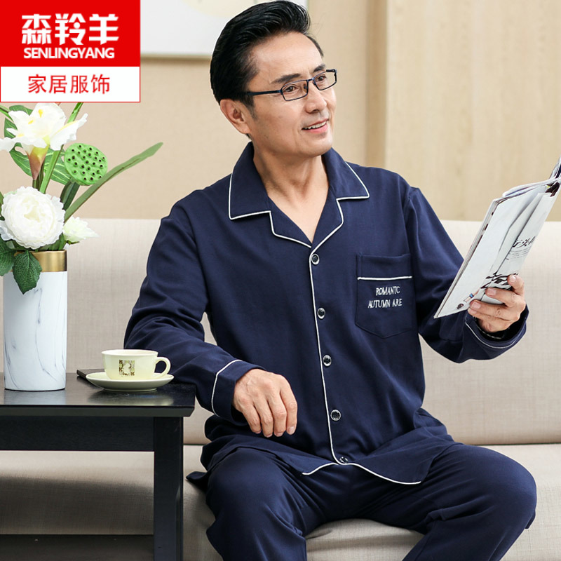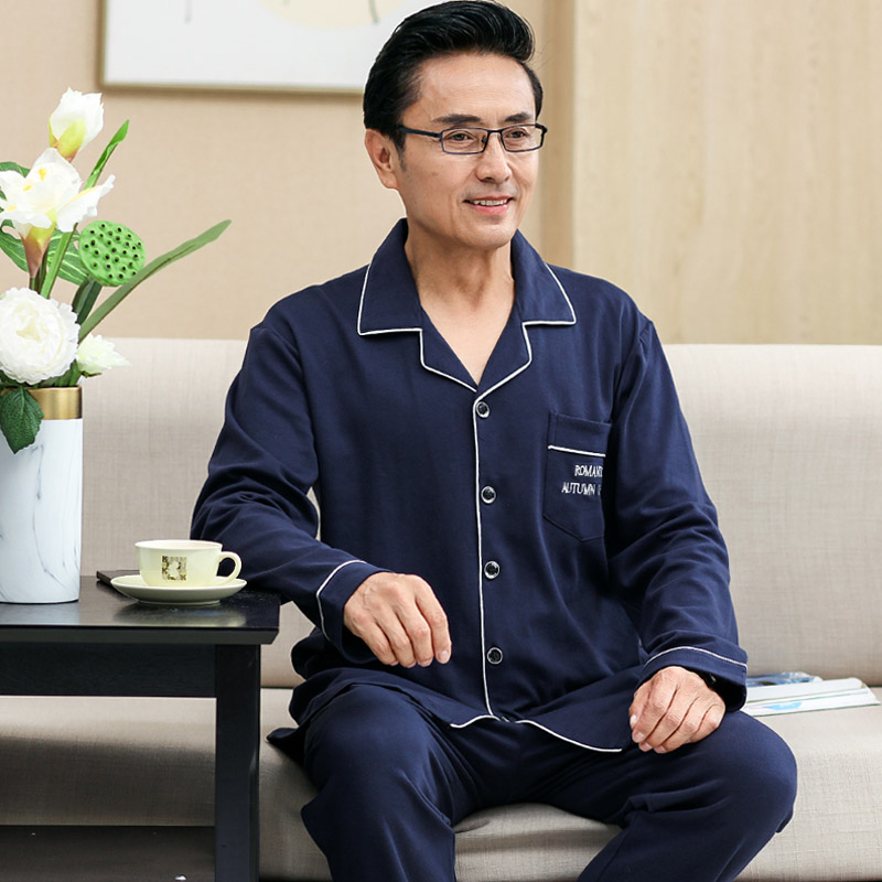 可外穿中年父亲男款长袖纯棉睡衣