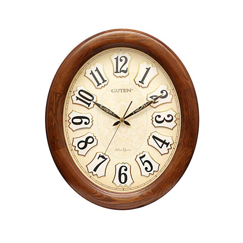 金钟宝椭圆形挂钟欧式客厅实木大号静音挂钟中式复古创意石英钟表