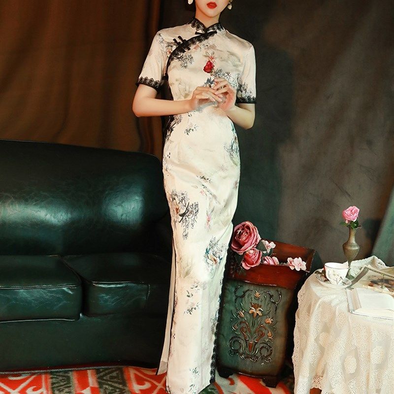 老上海旗袍2021年新款中国风女装民国复古改良版年轻款连衣裙夏季