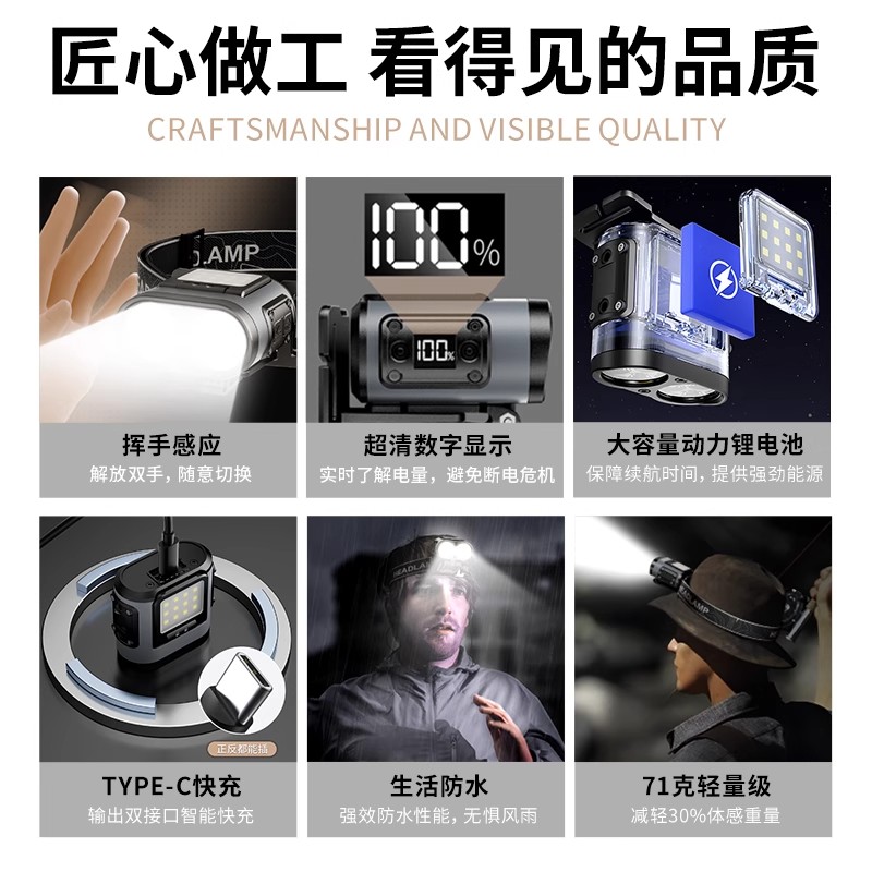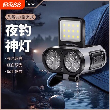 天火头灯钓鱼专用感应帽夹灯强光超亮充电夹式超长续航夜跑灯夜钓