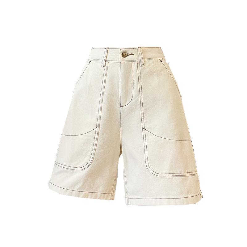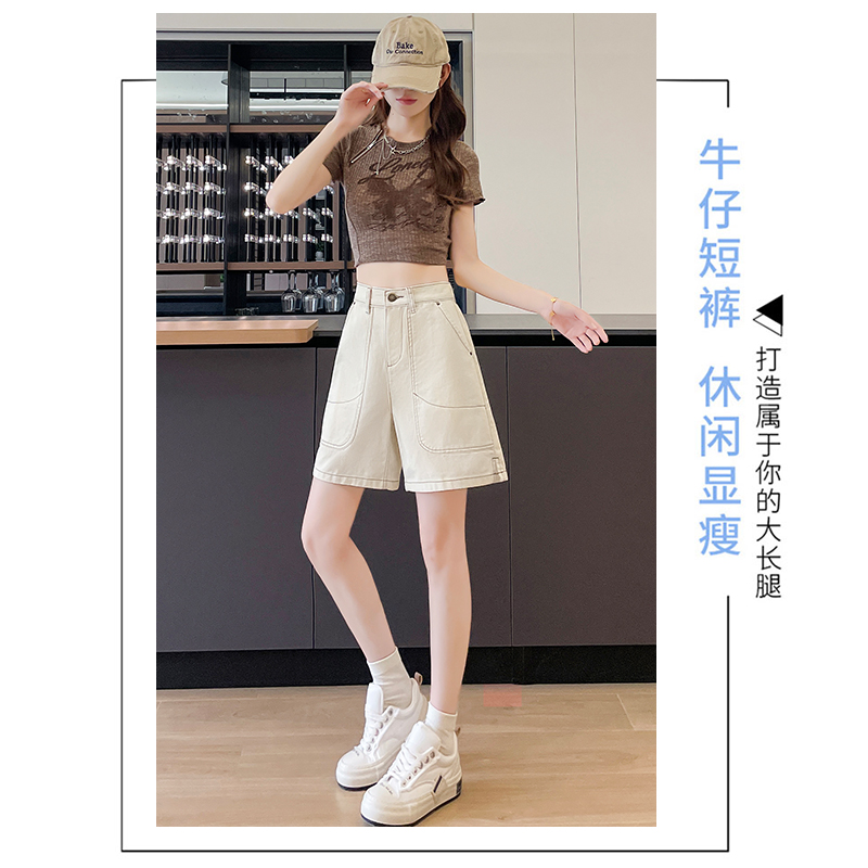 杏色高腰五分牛仔短裤女