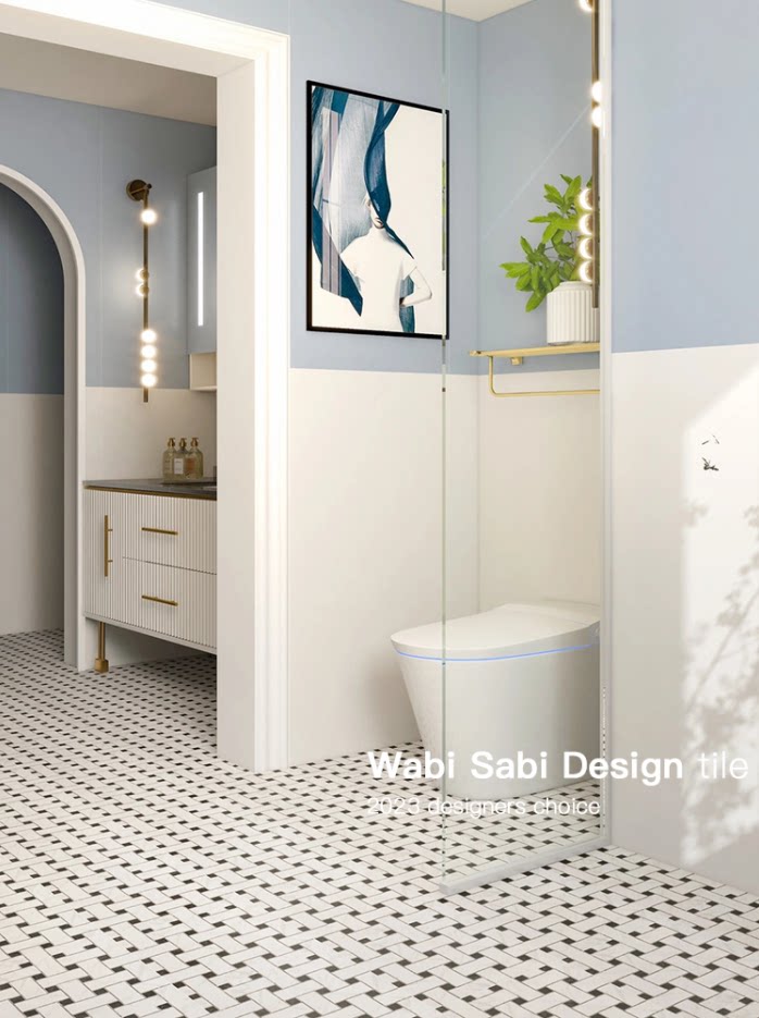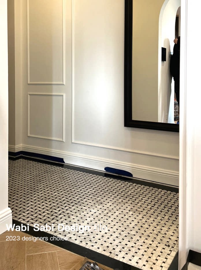 黑白编织纹石材马赛克瓷砖浴室卫生间阳台防滑地砖大理石背景墙砖