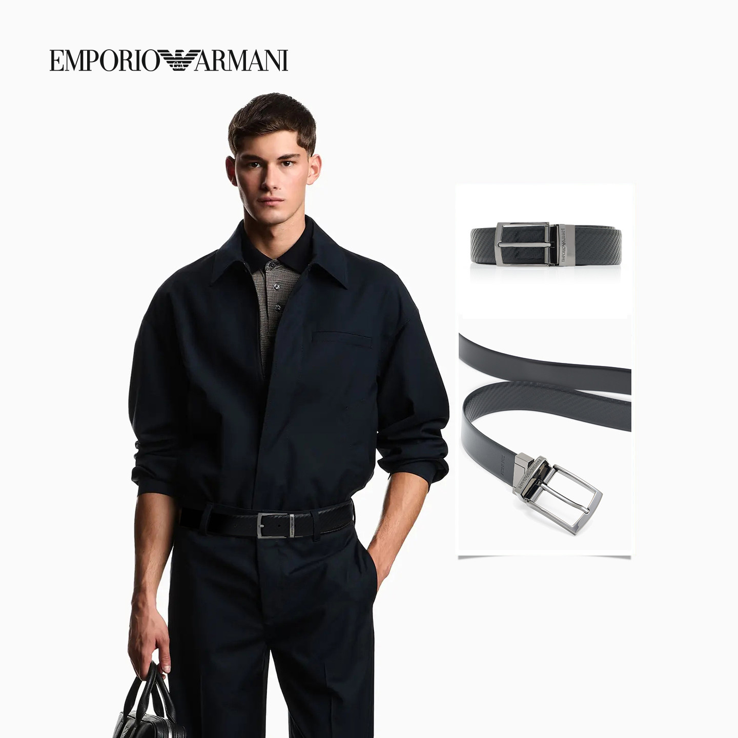 EMPORIO ARMANI/阿玛尼男士双面压花复古商务通勤方形针扣腰带