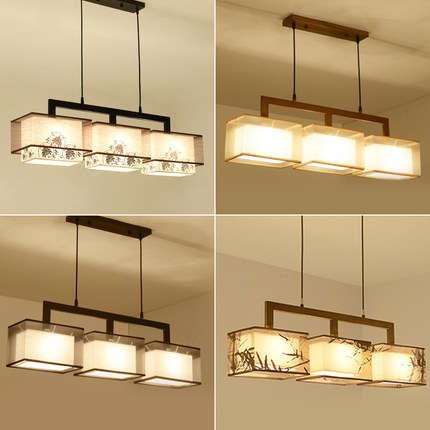 新中式现代简约长方形餐厅吊灯三头客厅灯创意个性饭X厅大气餐厅
