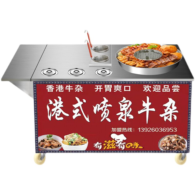 港式喷泉牛杂锅车商用摆摊车多功能燃气电麻辣烫粉面小吃车油炸锅