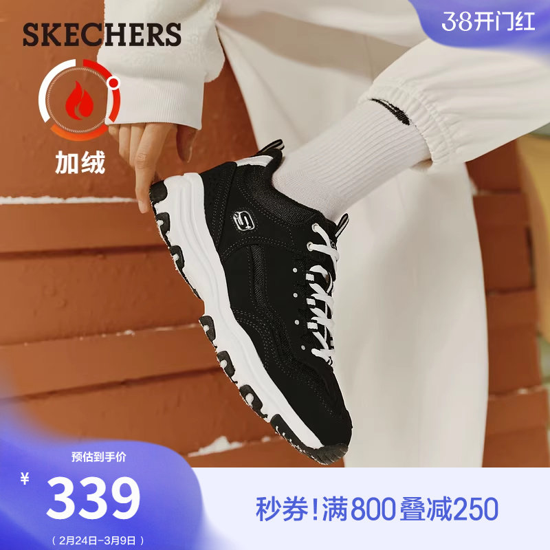 斯凯奇女秋冬新款加绒复古老爹鞋