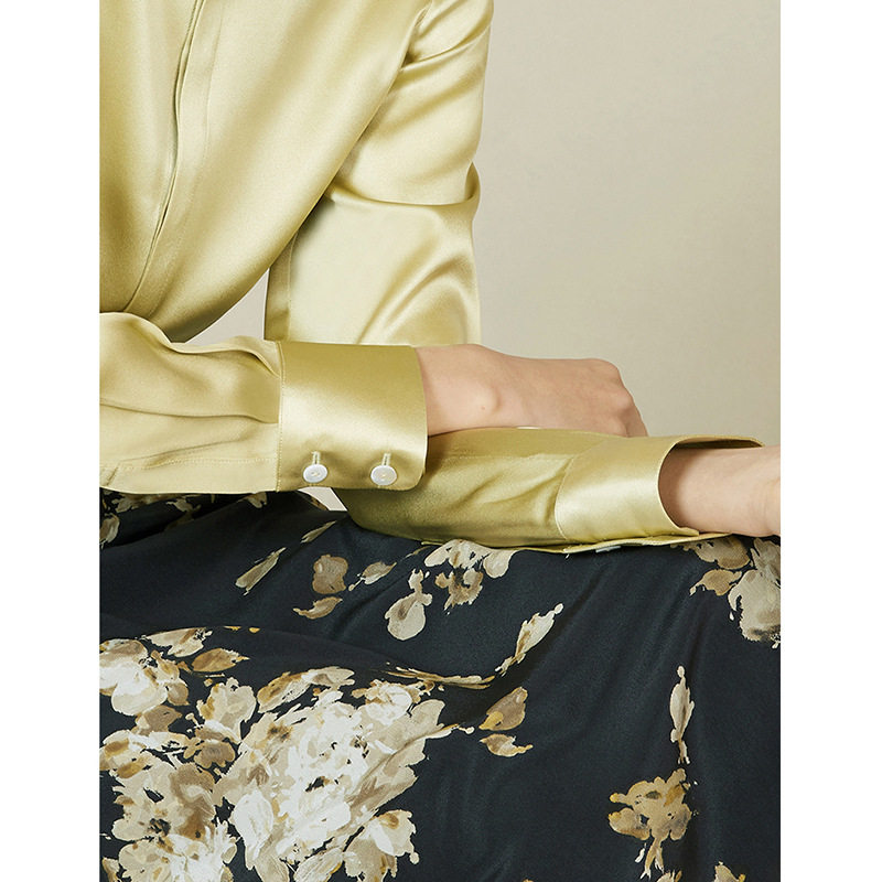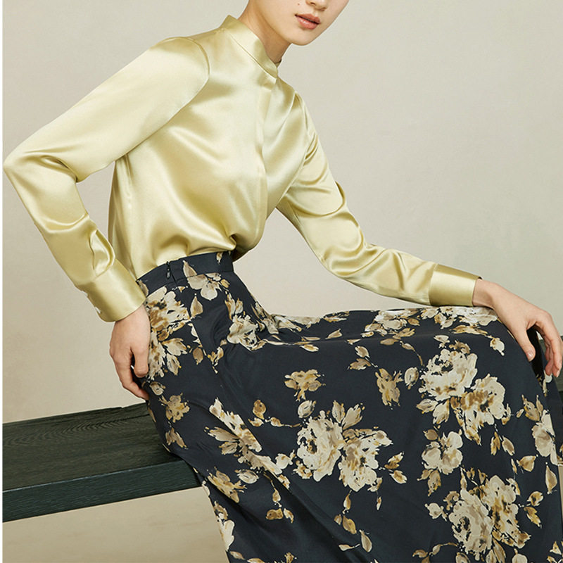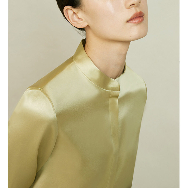 新款重磅真丝缎面衬衫女立领气质衬衣女