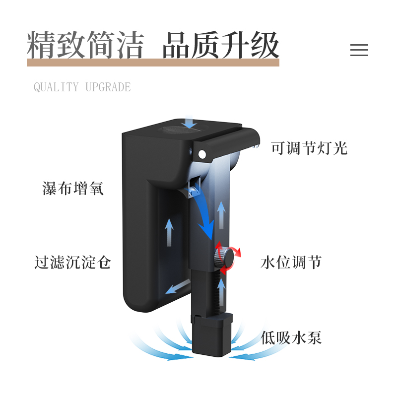 鱼缸过滤器制氧一体机小鱼缸壁挂式净水循环三合一静音增氧水泵