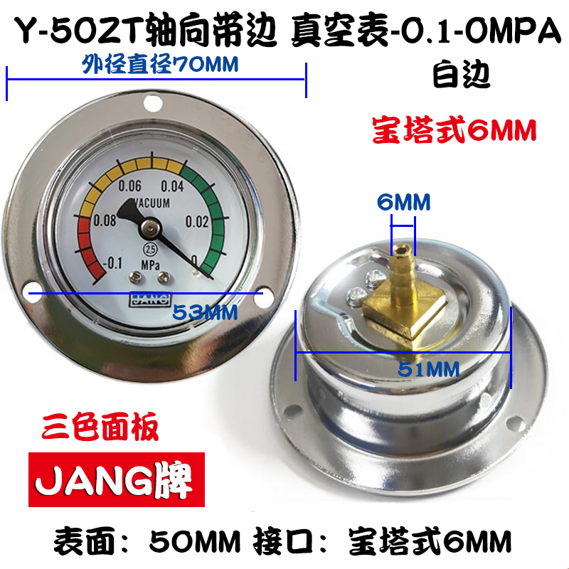 轴向带边压力表Y40ZT空压机气动气压表水压表真空表1MPA10KGY50ZT