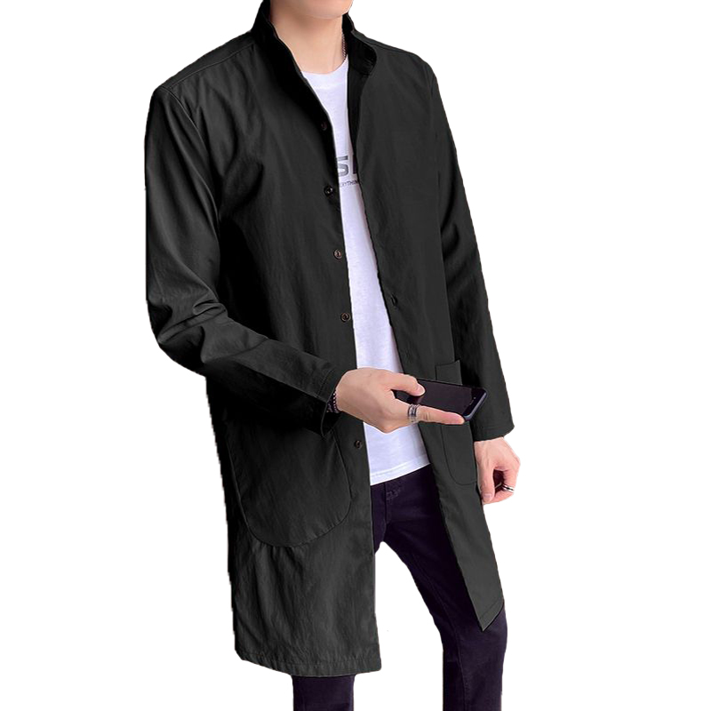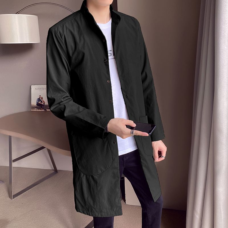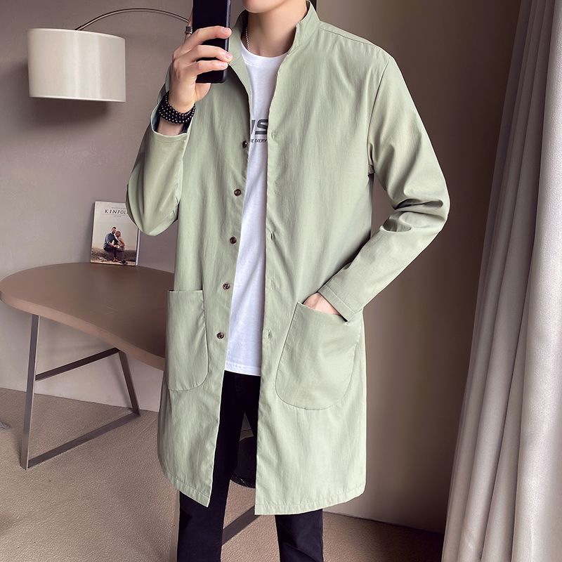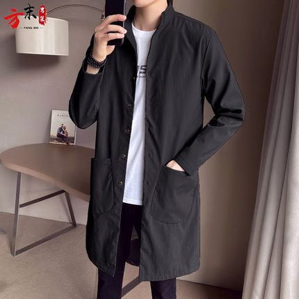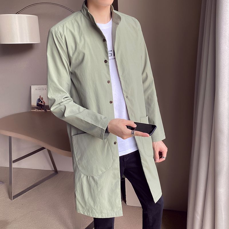 男士立领风衣2024秋季新款韩版修身薄款春秋百搭休闲中长款外套男