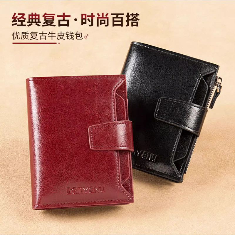 2025新款女士钱包女短款真皮质感拉链小卡包三折多功能驾驶证折叠