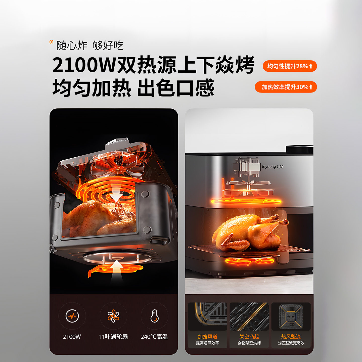九阳空气炸锅家用新款大容量双热源免翻面可视电炸锅电烤箱烹饪机