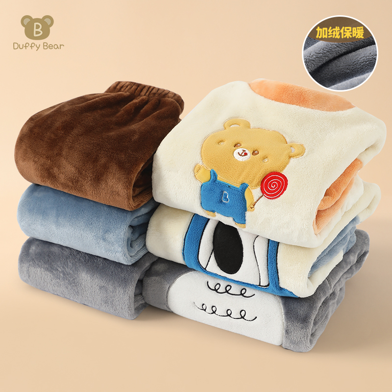 婴儿保暖珊瑚绒睡衣套装秋冬加厚内衣男宝宝卡通法兰绒分体家居服