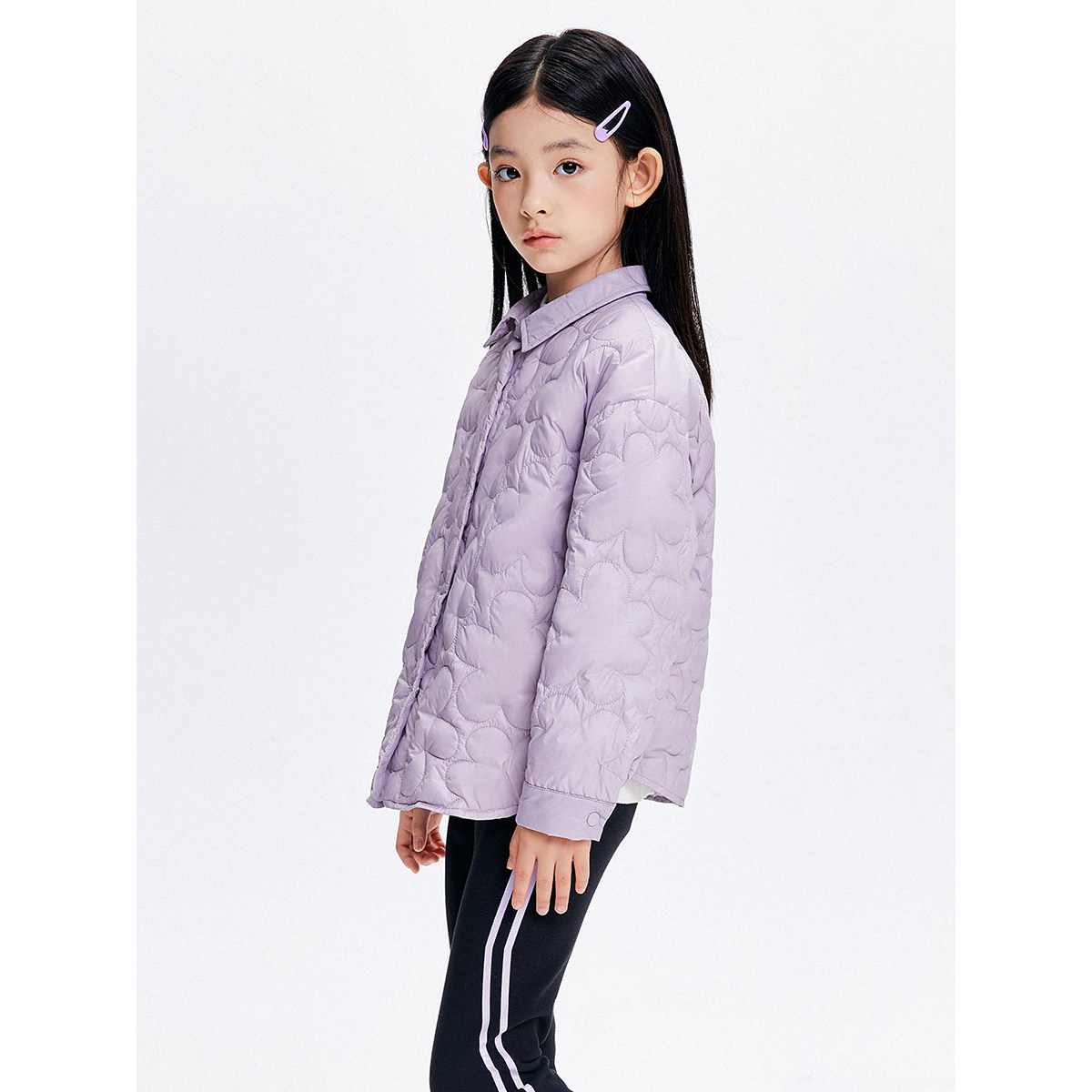 【云朵系列】太平鸟童装女童轻薄羽绒服短衬衫外套花朵绗缝三防