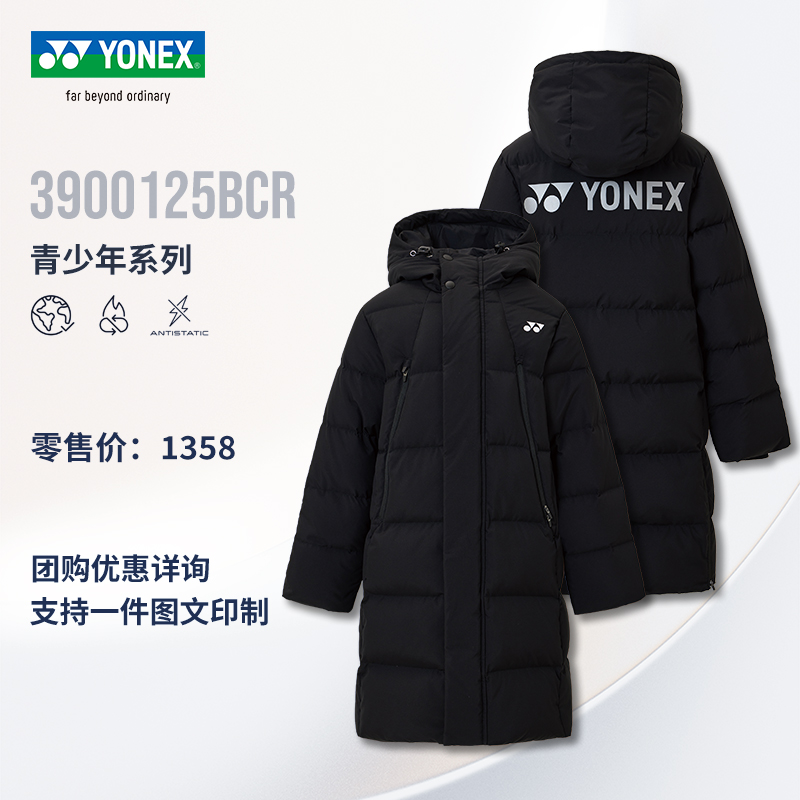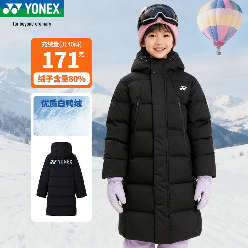 YONEX尤尼克斯 新品儿童青少年羽毛球服保暖长款羽绒服yy运动外套