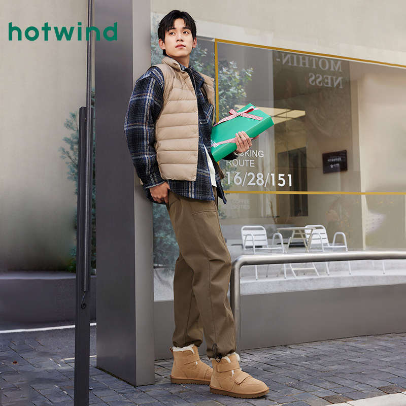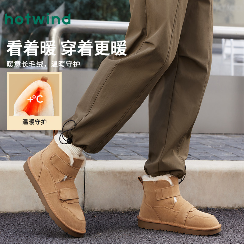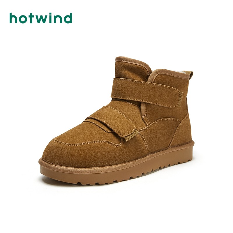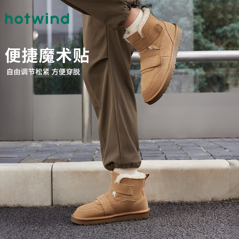 热风男鞋雪地靴冬季新款男士时尚魔术贴圆头休闲靴加绒保暖舒适