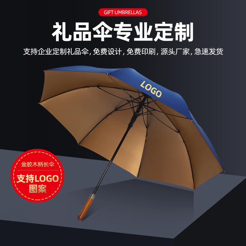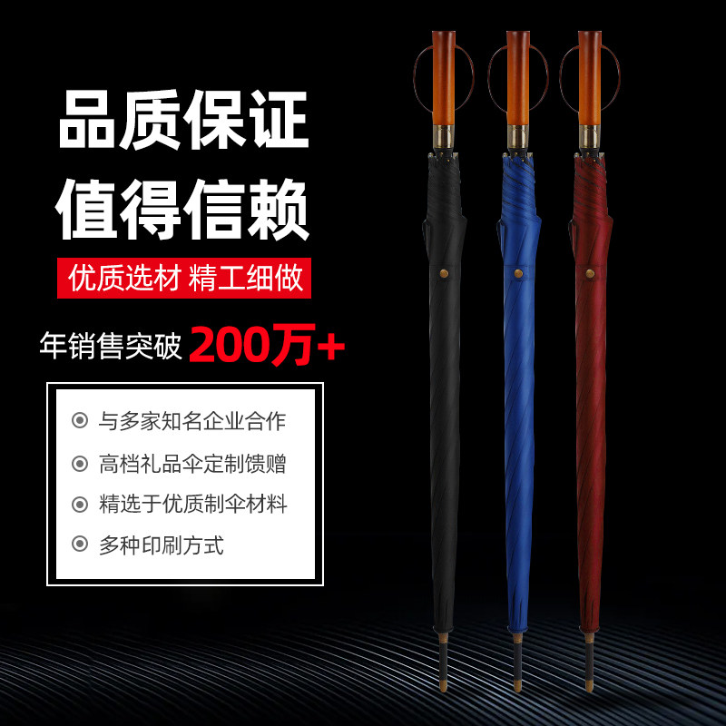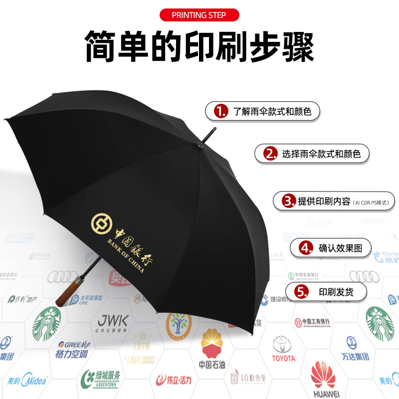 商务实木手柄大号长雨伞定制logo高端抗K风直杆双人广告伞印图案