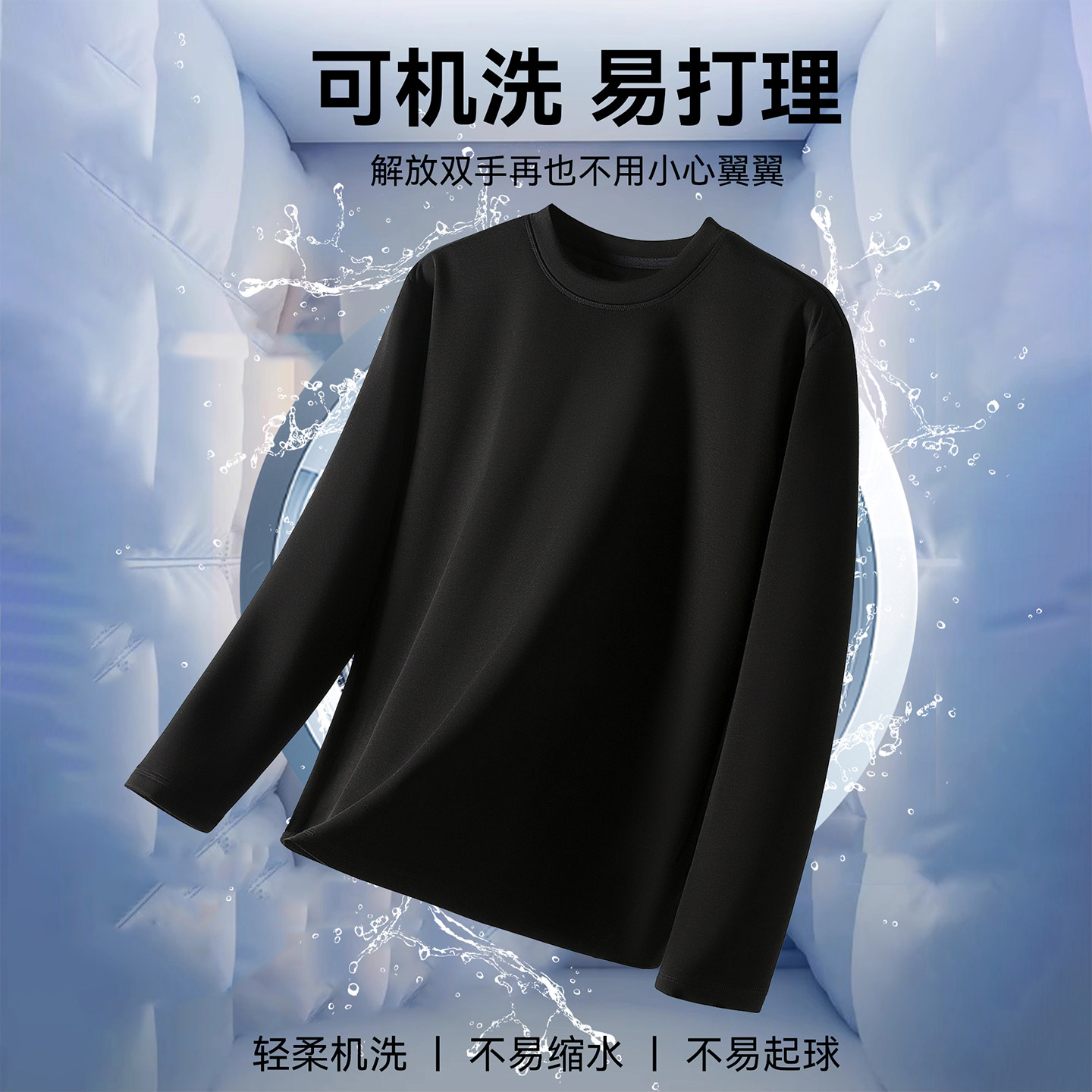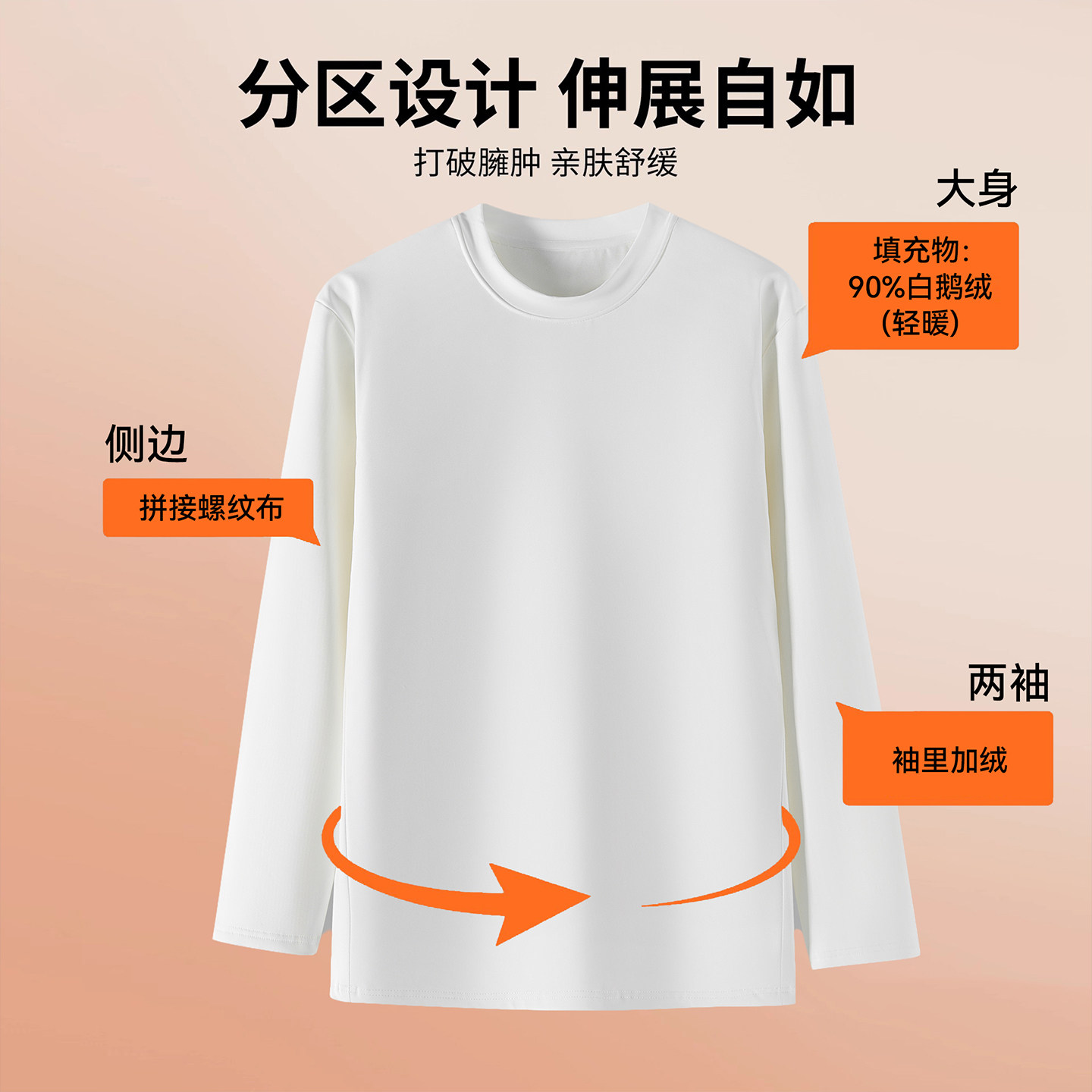 猫人鹅绒羽绒T恤男秋冬加绒保暖圆领长袖小白t打底衫男女情侣上衣
