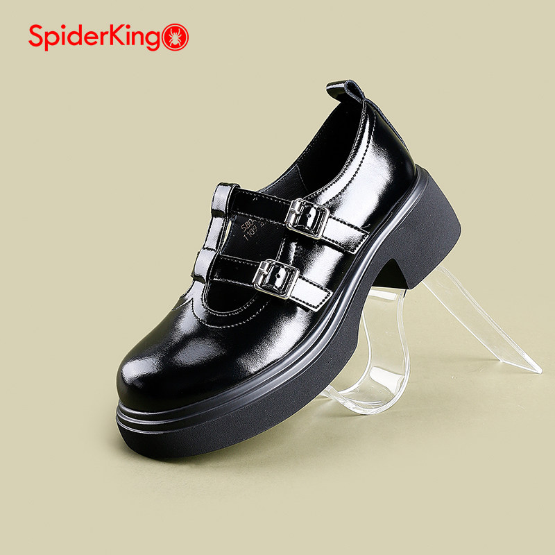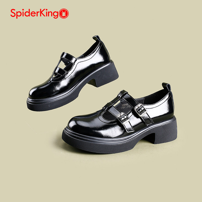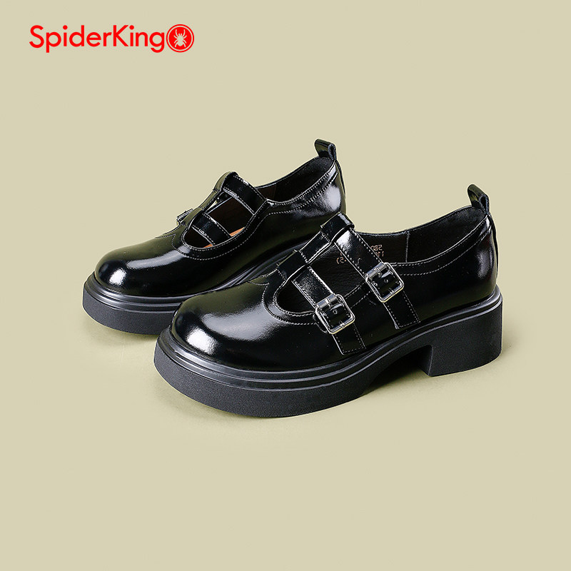 蜘蛛王女鞋2025春季法式真皮浅口乐福鞋圆头镂空一字玛丽珍小皮鞋