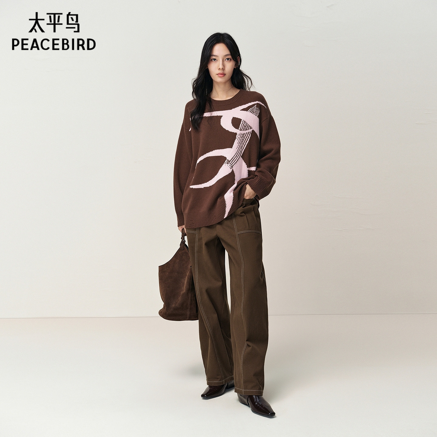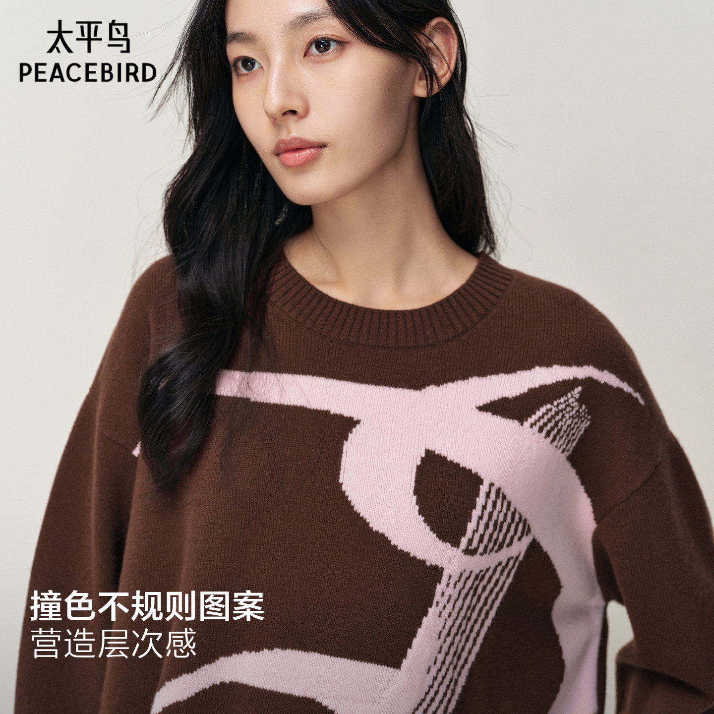 【商场同款】太平鸟100%全羊毛女士圆领几何图案针织衫A3EEF4B03