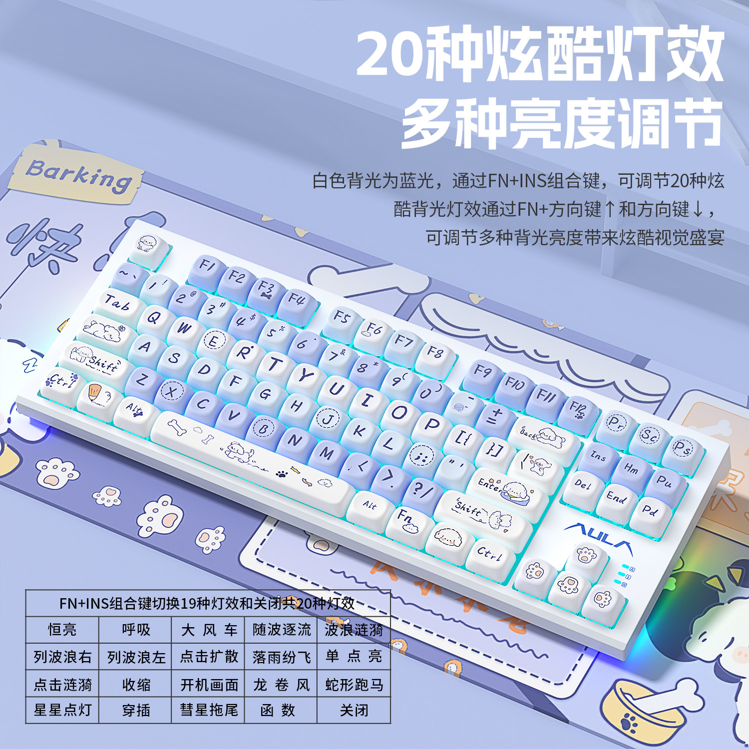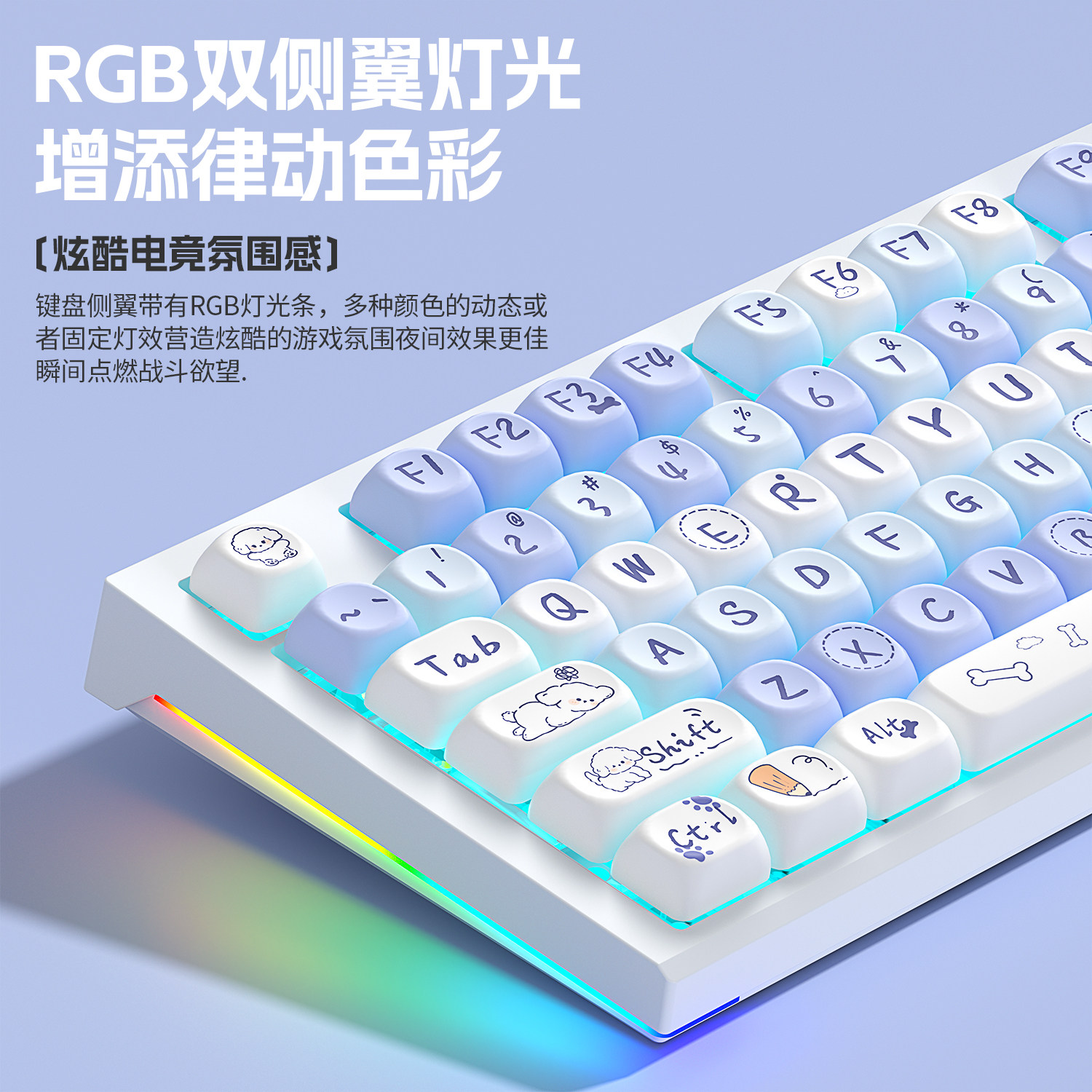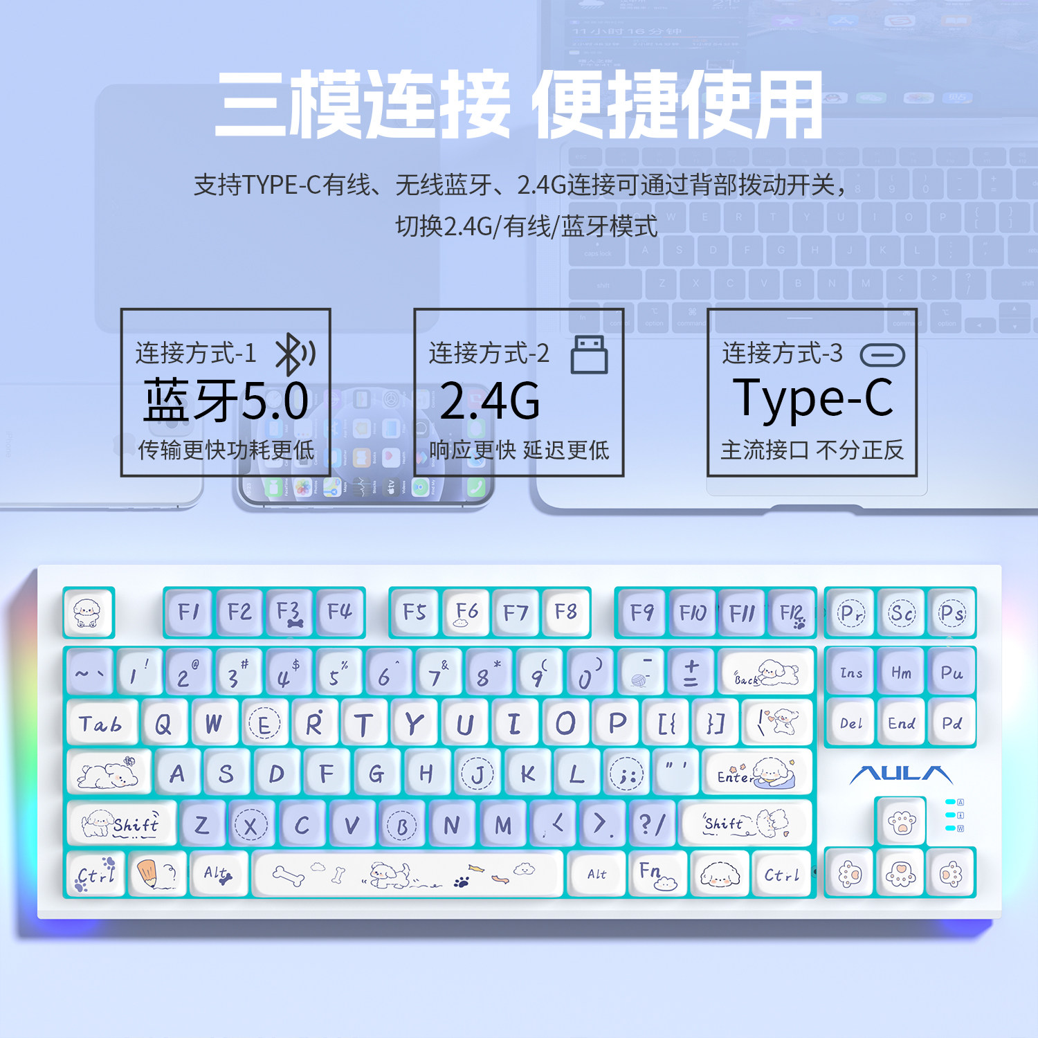 狼蛛87键机械键盘无线三模云朵汪汪鼠标套装蓝牙电竞游戏F3387