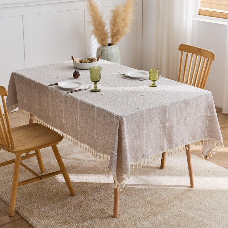 棉麻风流苏防水桌布美式乡村农舍风格长方形餐桌布艺茶几装饰桌布